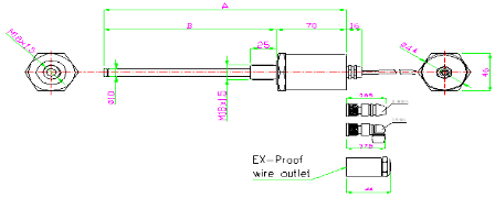 ★ 引線方式:      PVC屏蔽電纜線(默認(rèn)長度:1m,也可根據(jù)用戶要求提供) 航空插頭(不適用于隔爆產(chǎn)品)接線端子