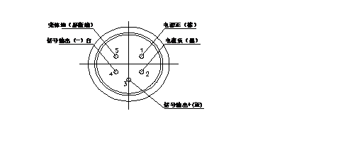 傳感器共有五個(gè)接點(diǎn):電源正(棕)、電源負(fù)(黑)、信號輸出正(藍(lán))、信號輸出負(fù)(白)、殼體地(屏蔽線)